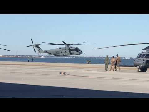 This is fascinating and amazing. An MH-53E front landing gear got stuck and a maintenance crew on the ground came out to pry it open while the helicopter hovered ...for 20 minutes. There's all sorts of way this could go really bad. Here is this pilot making this big helicopter hover 6-7 feet off the deck with people standing underneath it. Gotta do what ya gotta do, or get a rotor strike.